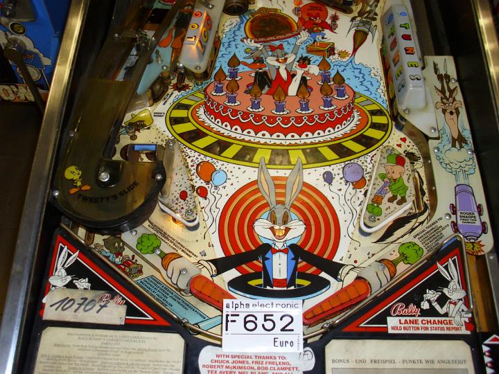 Zdjęcie przedstawia automat do gry, który został wydany na początku lat dziewięćdziesiątych. Jest to jeden z gadżetów, które wydano z okazji pięćdziesiątej rocznicy debiutu Królika Bugsa na srebrnym ekranie. Większość automatów do bugsowego pinballa działa do dziś, niestety z tego co wiem to żaden z nich nie stoi w Polsce :(